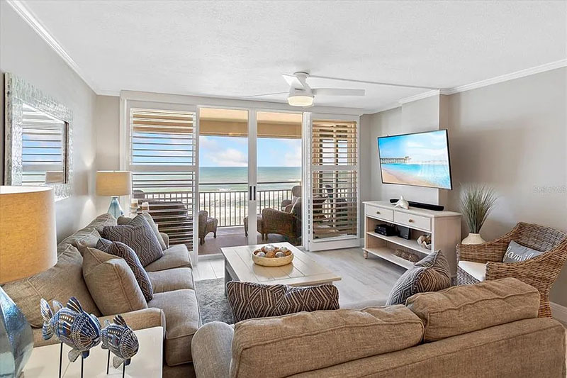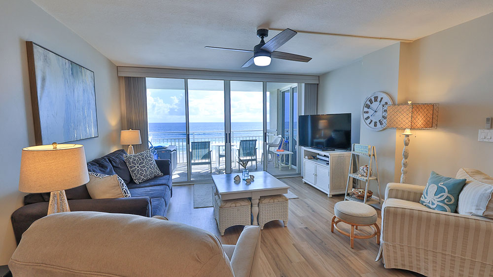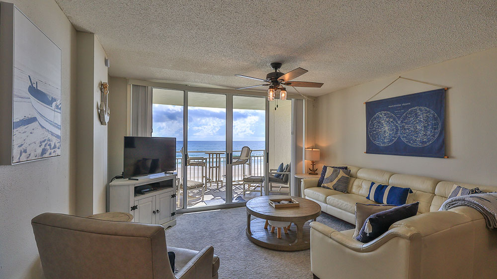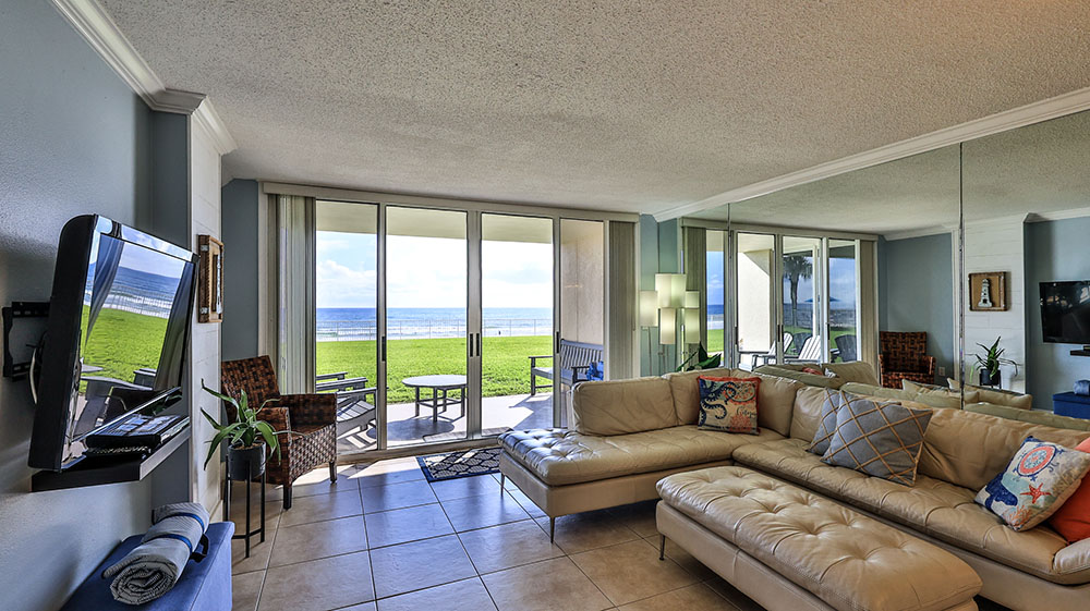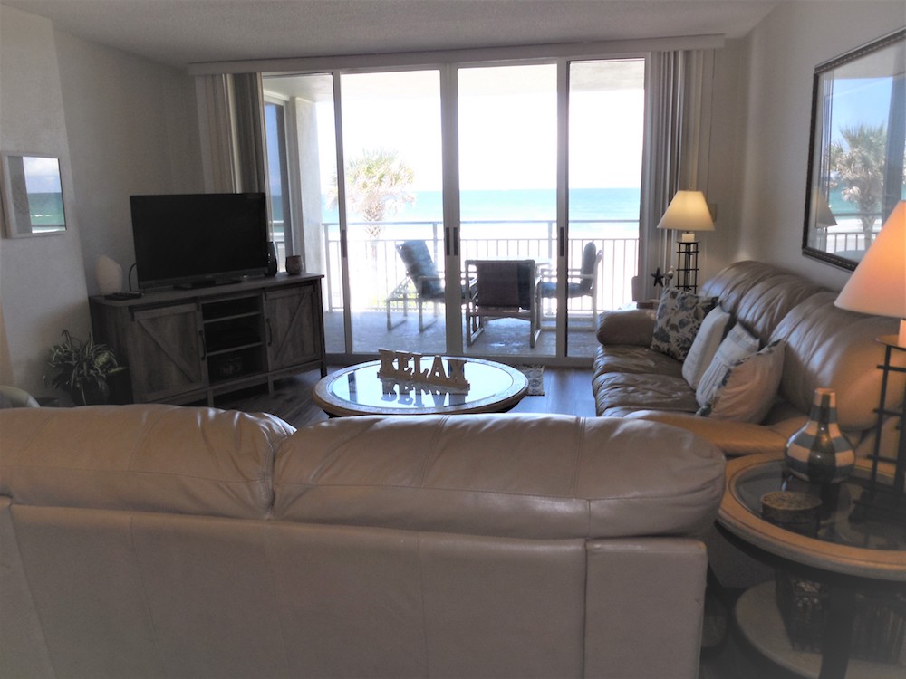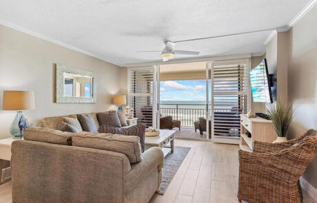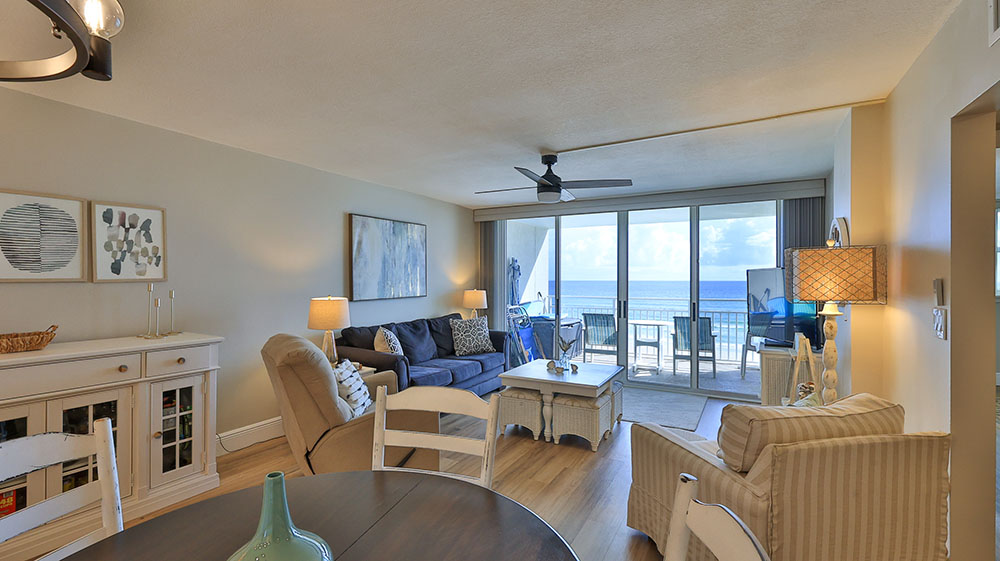 Generously sized Oceanfront Living Room and Primary Bedroom with access to your private balcony offer a feeling of space and comfort.