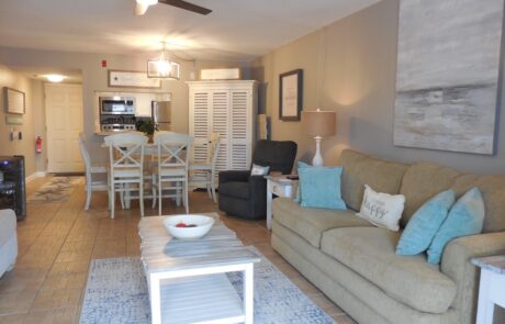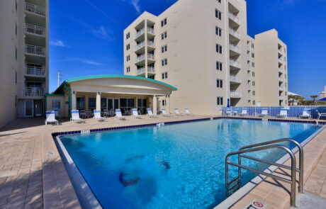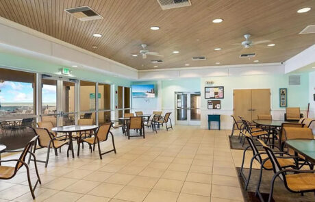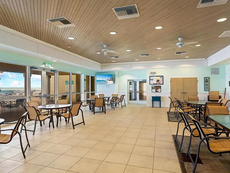 A large Community Room which overlooks the heated Oceanfront Pool and the Atlantic Ocean has a fully equipped kitchen and plenty of room for friends and family gatherings.